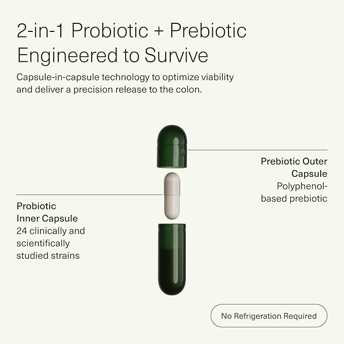 - Engineered to Survive: Seed’s patented capsule-in-capsule ViaCap delivery technology protects probiotics through digestion to ensure the full probiotic dose reaches the colon. DS-01 is shelf-stable and no refrigeration is required.