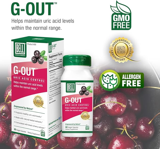 - POWERFUL URIC ACID and JOINT SUPPORT FORMULA: Bell's G-OUT features unique natural ingredients that work together to help support healthy and normal uric acid levels. This product features black cherry and celery seed extracts, designed to support healthy joints and uric acid balance within the body's circulation.