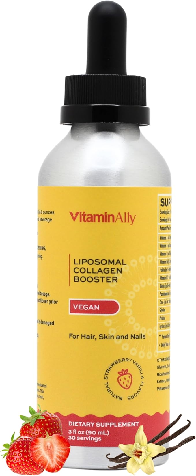 Vegan Liposomal Liquid Collagen Booster Drops | Supports Healthy Hair, Skin and Nails | Vegan | Non-GMO | Sugar Free | Gluten Free | Easy to Use