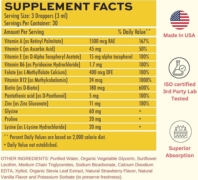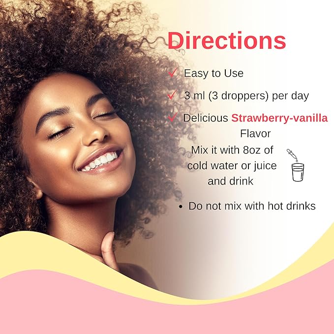 - Easy to Use and Delicious: Our Liposomal Collagen Booster comes in easy-to-take liquid drops. Just mix 3ml (3droppers) in 8 ounces of cold water or your favorite beverage and drink. Plus, our strawberry Vanilla flavor ensures a pleasant experience every time.