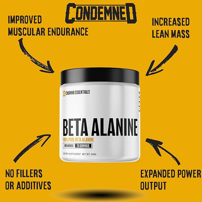 CONDEMNED Labz 100% Pure Beta Alanine Powder | for Muscular Endurance & Recovery | No Fillers or Additives | Gluten Free, Non GMO | 75 Servings (Unflavored)