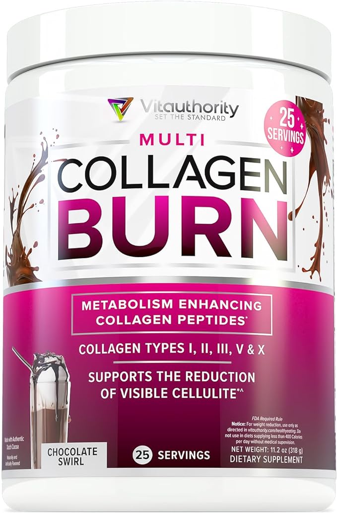 Vitauthority Collagen Peptides Powder Weight Loss | Collagen Supplements Hydrolyzed Beauty Complex | Multi Collagen for Women, Hair Skin Nails | Fat Burning Support | Chocolate Flavored 25 Servings