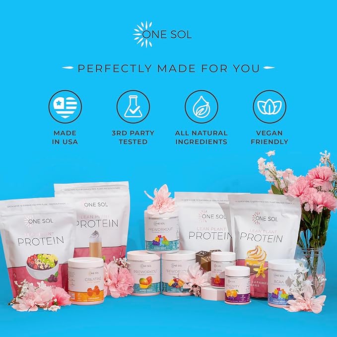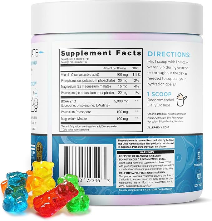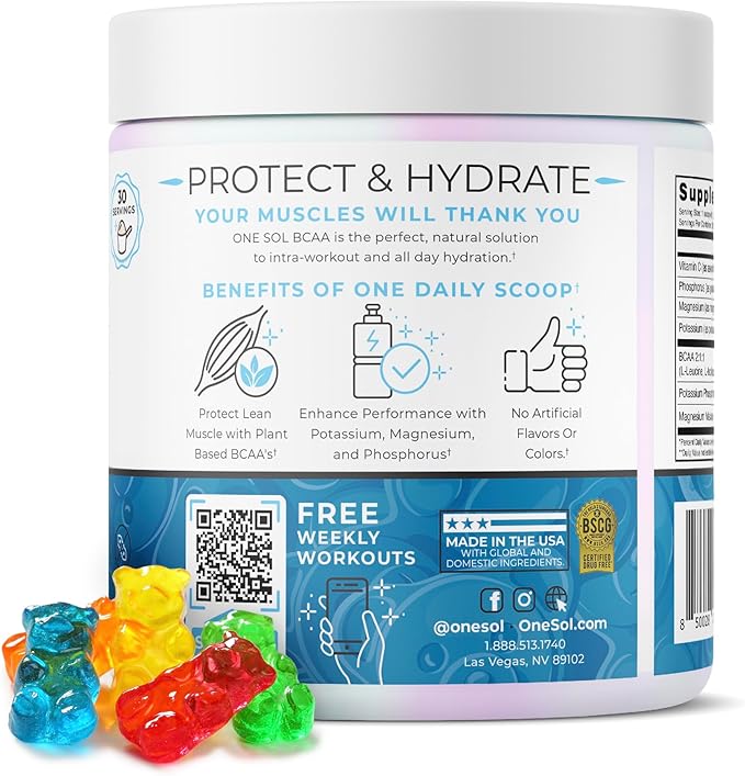 One Sol BCAA & Electrolyte Powder for Hydration & Energy, All-Natural Formula, 100% Vegan, Non-GMO, Gluten Free & Soy-Free, Promotes Muscle Growth & Recovery, Gummy Bear Flavor