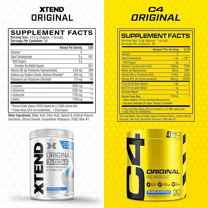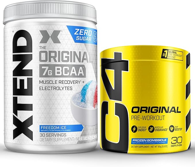 Cellucor Pre Workout & BCAA Bundle, C4 Original Pre Workout Powder, Frozen Bombsicle, 30 Servings + XTEND BCAA Powder, Freedom Ice, 30 Servings