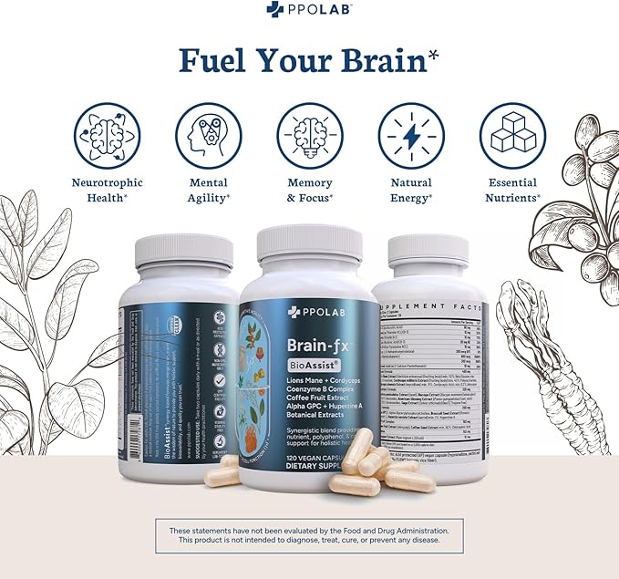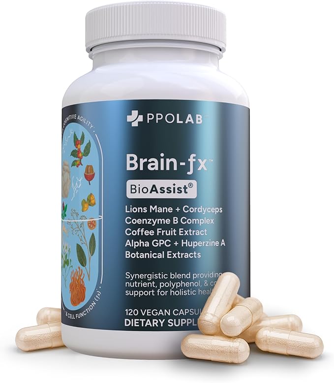 Brain-fx™ Daily Energy Focus Memory Mood Mind Nootropic Supplement - 5-MTHF Methyl B Vitamins, Coffee Fruit, L Theanine, Cordyceps, Lions Mane, Ginseng, Bacopa, Alpha GPC Choline 120 Vegan Capsules