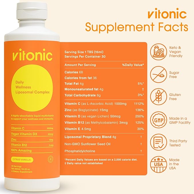 - Feel the Difference with Vitonic: Our cutting-edge liposomal technology ensures efficient nutrient absorption, helping your body thrive with every dose.