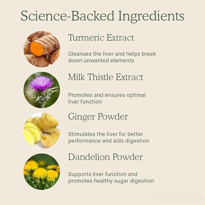 - NATURAL INGREDIENTS: Made with Organic Turmeric Extract, Organic Dandelion Powder, Organic Milk Thistle extract and Organic Ginger Powder.