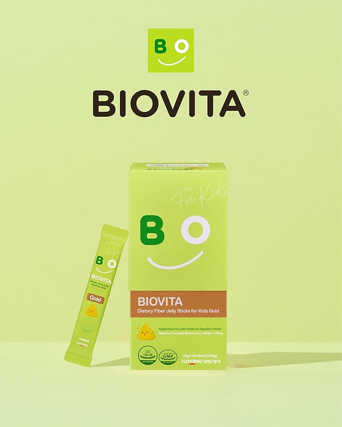 - BIOVITA DIETARY FIBER JELLY STICKS (20g x 20 sticks) - BIOVITA's Kids Fiber Jelly is a breakthrough in digestive health for children. Immerse your little ones in the delightful taste of tangy apple, making their daily routine a joyful experience. Each pack comprises 20 conveniently sized sticks, offering 20 generous servings to ensure lasting support for your child's digestive comfort.