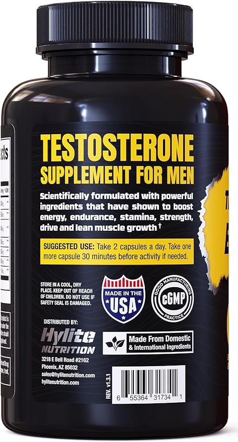 - Made in the USA - Hylite Nutrition prioritizes quality ingredients & customer support to bring you the best testosterone booster we can offer. Each batch is 3rd party lab tested for quality & purity & are manufactured in the USA at a registered cGMP facility with Non-GMO ingredients.*