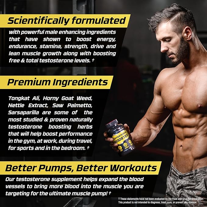 - Testosterone Booster for Man - Scientifically formulated with powerful male enhancing ingredients that have shown to boost energy, endurance, stamina, strength, drive and lean muscle growth along with boosting free & total testosterone levels.*