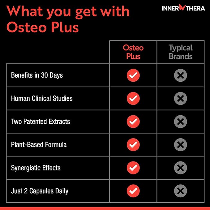 - Formulated with clinically backed Bonolive and essential nutrients like Vitamin K2, D3, and calcium to help reduce bone lose from aging. Everyone, particularly women, naturally lose bone density as a result of aging and Osteo Plus helps improve bone health and maintain it for healthy aging.