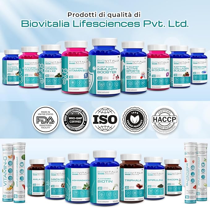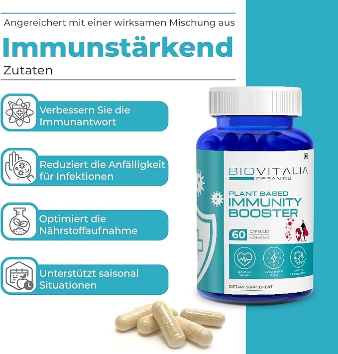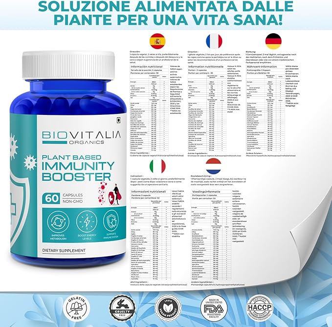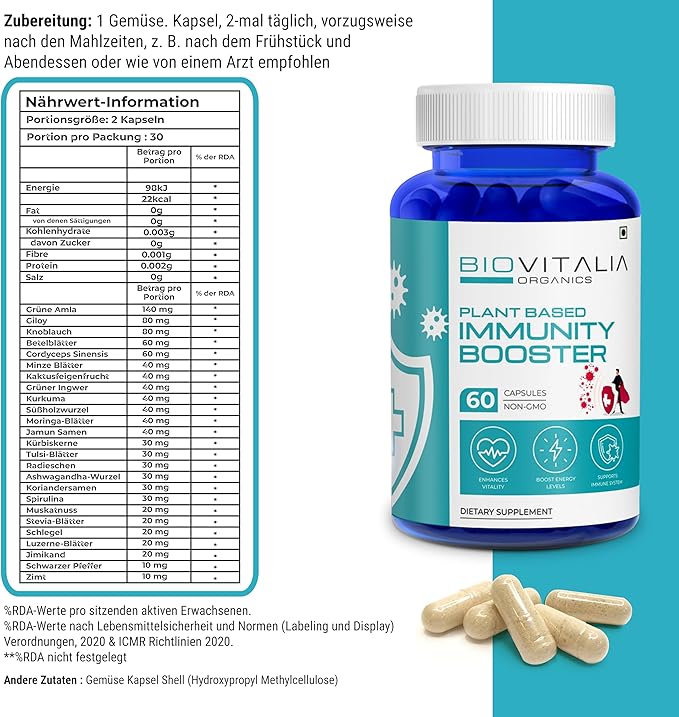 - ✅ A POWERHOUSE IMMUNE SYSTEM BOOSTER – Bolster up your body's immune defence with Biovitalia's Immunity booster, loaded with 25 key nutrients to promote the best immunity support. An advanced combination of all the powerful immune support vitamins & elderberry pills in one bottle: Turmeric, Green Amla, Giloy, Moringa, Black Pepper, Ashwagandh and more.