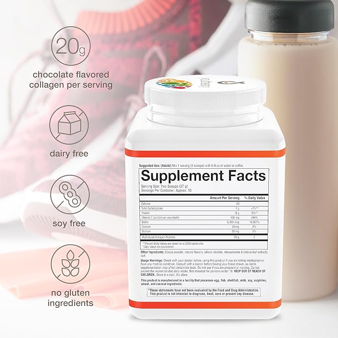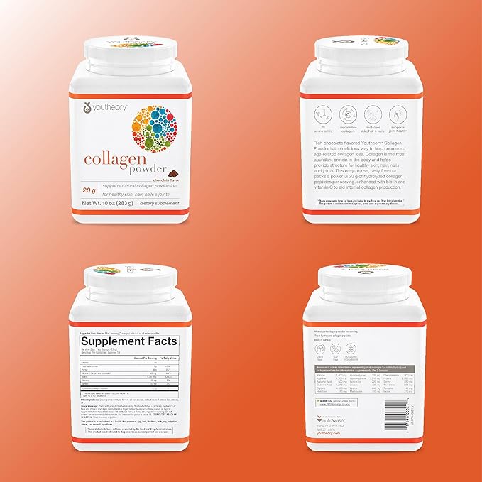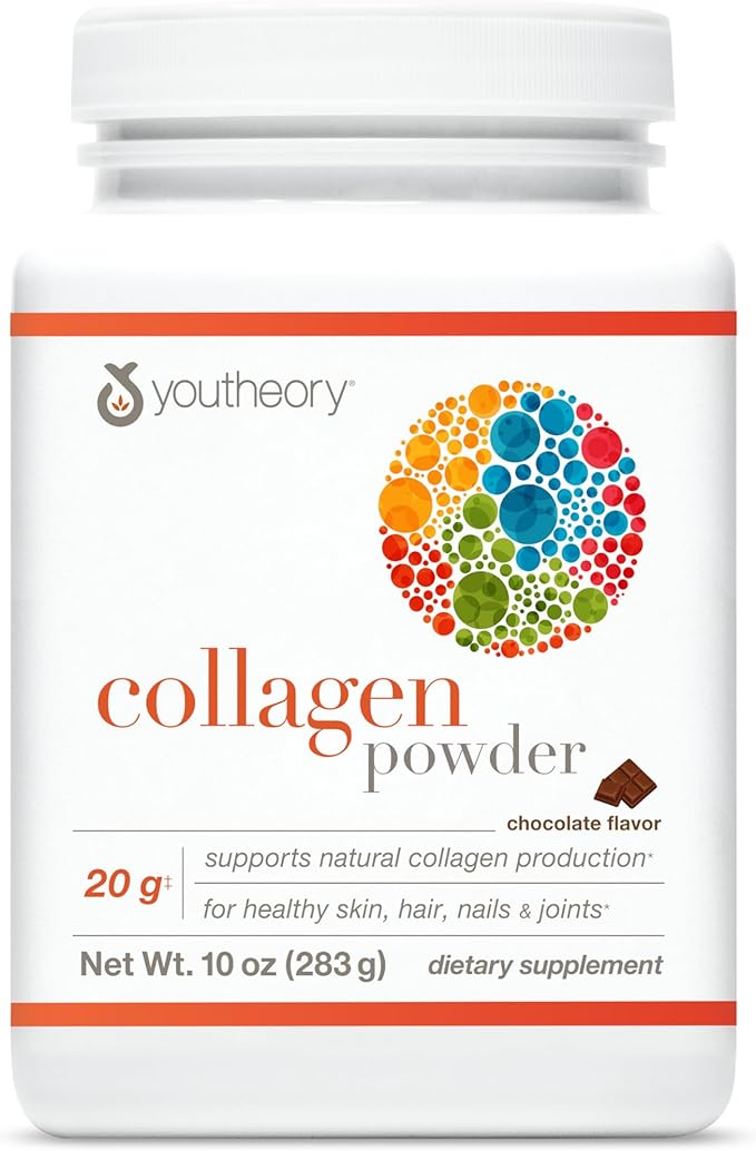 Youtheory Collagen Powder - Premium Collagen Supplement with Vitamin C & Biotin - Supports Healthy Hair, Nails, Skin & Joints* - Dairy, Soy, & Gluten Free - Chocolate, 10 oz