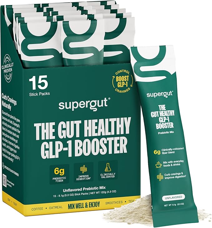 - How GLP-1 works: GLP-1 is a hormone produced in the gut during digestion that may help to maintain a feeling of fullness and support metabolic health. Supergut's prebiotic fibers, including resistant starch and beta-glucan, are formulated to promote GLP-1 activity and help control cravings.