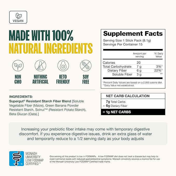 - NOT YOUR ORDINARY FIBER: The secret to Supergut is a powerful prebiotic fiber called Resistant Starch.