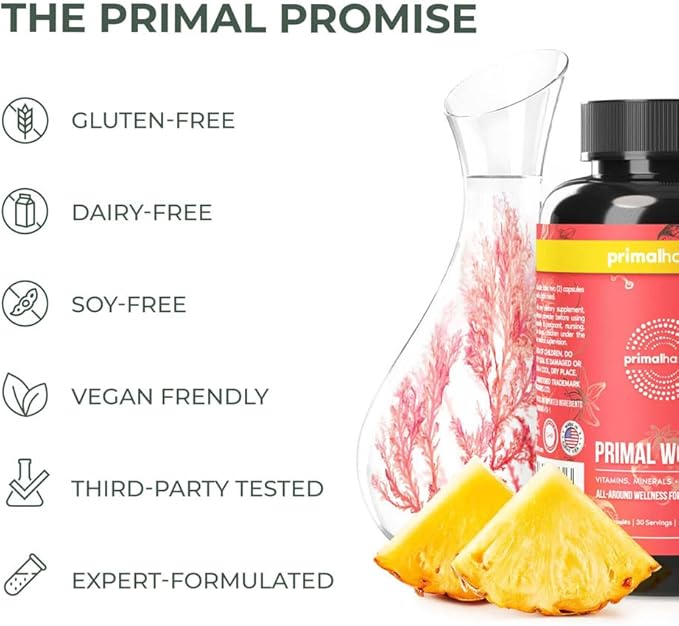 - 24 Vitamins and Minerals: Primal Women+ by Primal Harvest is a twice daily dietary supplement formula that features holistic ingredients to help support your overall well being