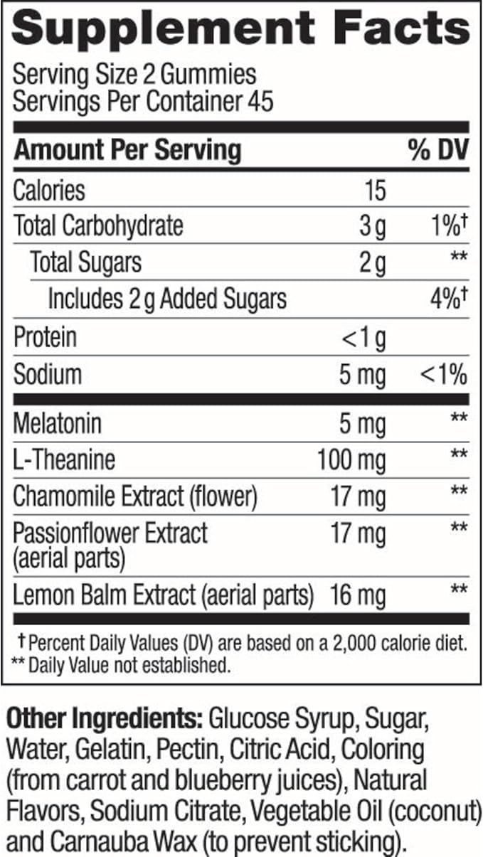- Special Ingredients : L-Theanine, Melatonin, Lemon Balm, Chamomile