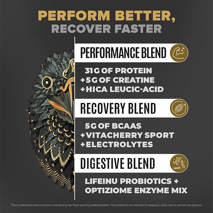 - Promote muscle growth and enhanced performance thanks to our performance blend. Each serving is loaded with up to 31 grams of protein, 5 grams of creatine and HICA: designed for those looking to supplement their daily protein intake and support an active lifestyle.