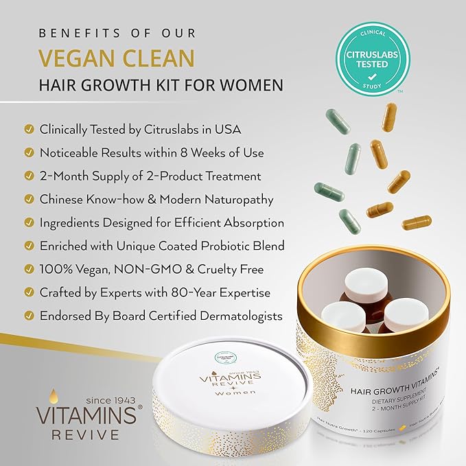 VITAMINS REVIVE Hair Supplement Hair Growth Vitamins for Women - USA Clinically Tested - Hair Loss Products for Thinning & Thickening - Female Hair Regrowth Treatment (2 Month Supply)