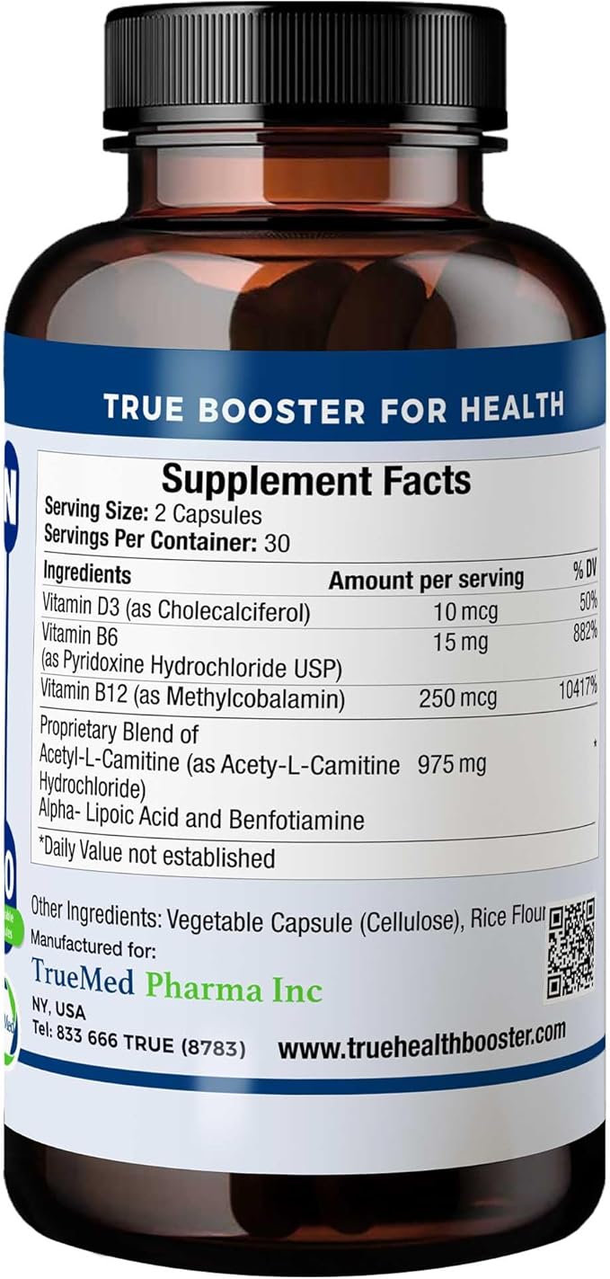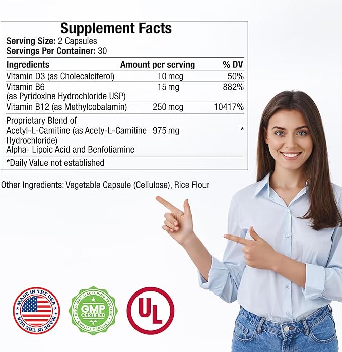 Neuropathy Support Neuro and Nerve Health Supplement with Vitamin D3, B6, B12, Acetyl-L-Carnitine, Alpha-Lipoic Acid, and Benfotiamine Supports Feet Nerve Function 60 Vegetable Capsules