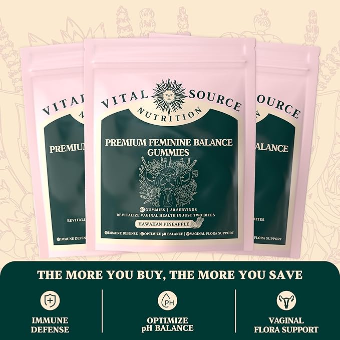 - FEMININE GUMMIES - Vital Source Nutrition Premium Feminine Balance Gummies are specially formulated daily supplements for women designed to help support overall women’s health and wellness. This convenient treat blends Pineapple Fruit Powder and Bacillus Coagulans, offering a path for Women’s Vital Health.