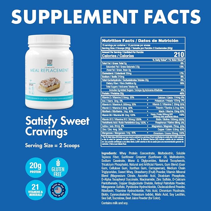 Yes You Can! Complete Meal Replacement - 15 Servings, 20g of Protein, 0g Added Sugars, Over 20 Vitamins and Minerals - All-in-One Nutritious Meal Replacement Shake (Tres Leches)
