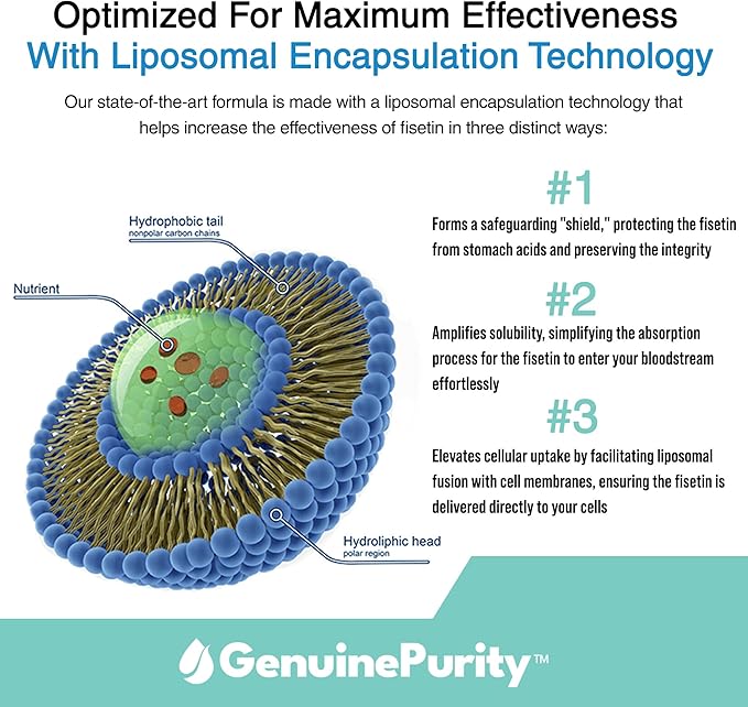 - NON-GMO INGREDIENTS - GenuinePurity Fisetin is made with organic and non-GMO ingredients. Our supplements are free from artificial additives and preservatives, ensuring a pure and potent formula.