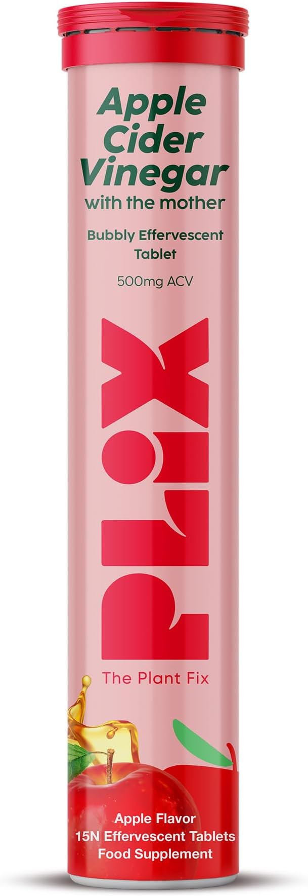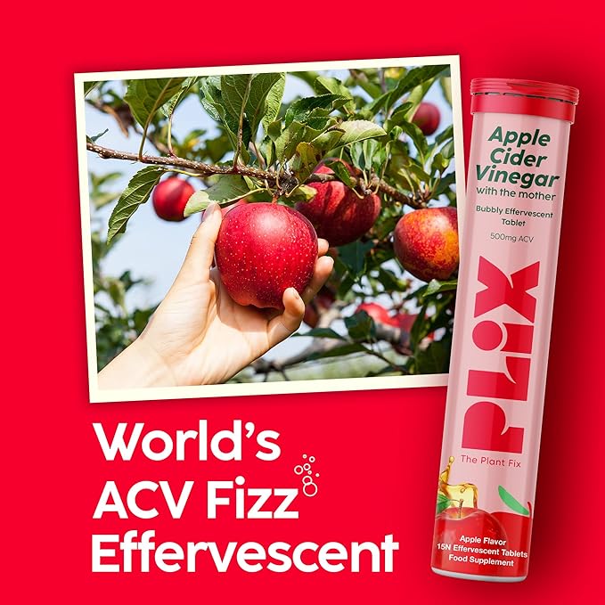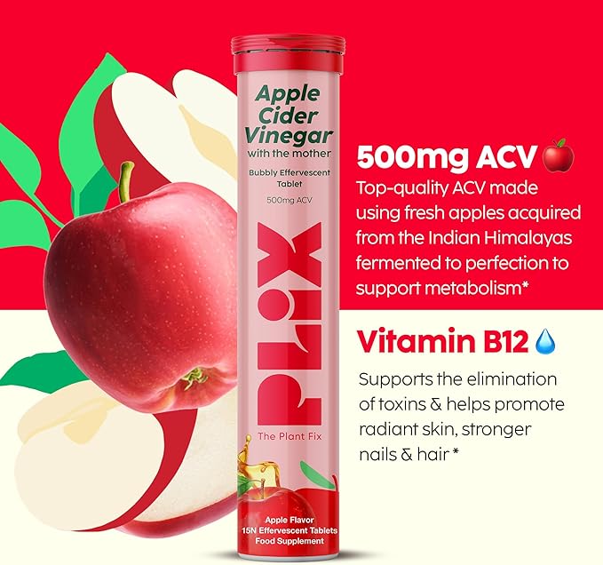 PLIX THE PLANT FIX Apple Cider Vinegar Effervescent Tablets with The Mother, 700mg ACV with VIT B12, B6, Pack of 12 |Vegan, No Added Sugar, Non-GMO & Gluten-Free