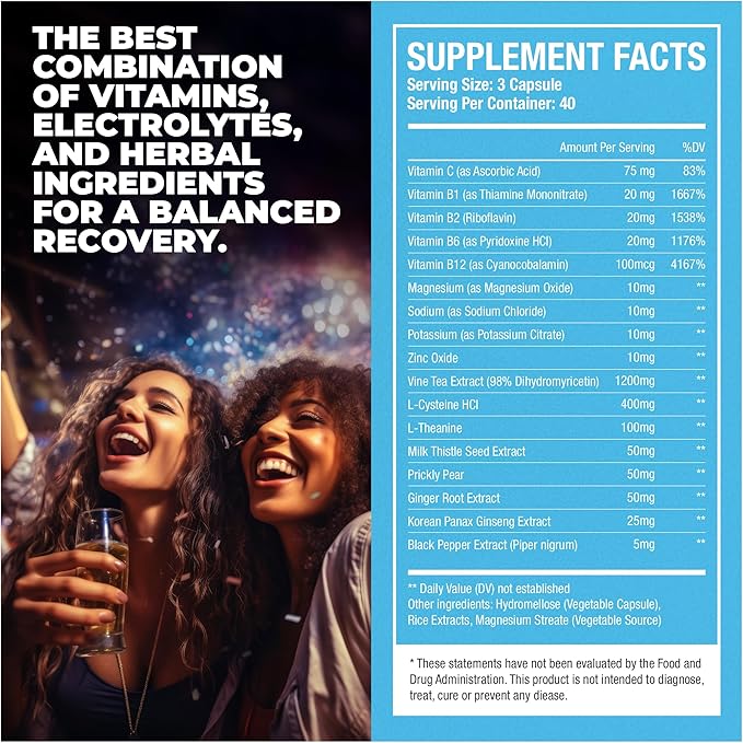 - ✅ Long-Lasting Relief: Enjoy A Fun Night Out Of Drinking With Confidence When Using Our After Drinking Aid Pills. Simply Take 3 Capsules With A Full Glass Of Water After Your Last Drink For A Better Morning.