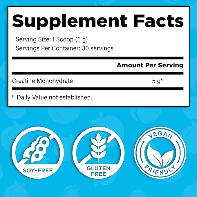 Curvy Body Creatine Monohydrate Powder | Workout Support | Vegan | Kosher | Blue Raspberry Flavor 180 Grams (30 Servings)