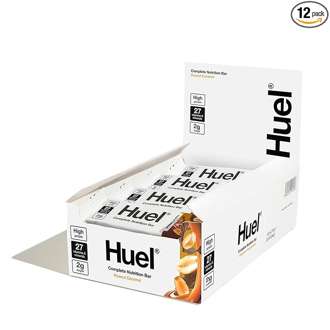 Huel Complete Nutrition Vegan Protein Bars | Peanut Caramel | 13g Protein, 27 Vitamins and Minerals, 2g Sugar, Non-GMO, 100% Plant Based Snack | 12 Pack