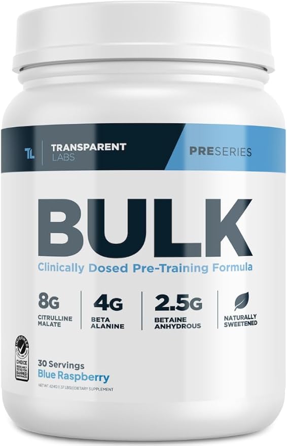 - Enhanced Performance: Transparent Labs Bulk Pre-workout isn't just another energy booster. It's a comprehensive performance enhancer. With a combination of ingredients tailored to enhance strength, increase muscle pumps, boost stamina, sharpen focus, and provide sustained energy, Bulk empowers you to take charge of your workouts. Whether you're aiming to set new personal records or achieve lean muscle growth, Bulk is your trusted partner on your fitness path.