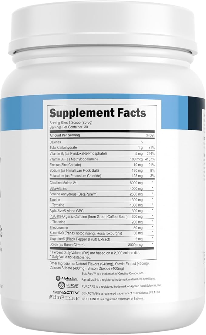 - Science-Backed Formula: Transparent Labs Bulk Pre-workout is distinguished by its extensive, evidence-based formula that includes key ingredients such as Citrulline Malate, Beta-Alanine, Betaine Anhydrous, Taurine, L-Tyrosine, AlphaSize Alpha-GPC, and more. This carefully crafted blend is designed to provide a holistic boost to your workout performance, ensuring you have the necessary tools to push your limits and achieve your fitness goals.