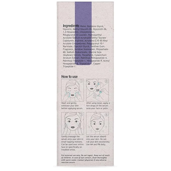 - -[6 TYPES OF ADVANCED PEPTIDES] Containing 96% natural cruelty-free certified ingredients, this day-and-night serum for your face and neck is formulated with 6 advanced types of peptides such as Copper Tripeptide to enhance anti-aging benefits and aids in tissue repair.