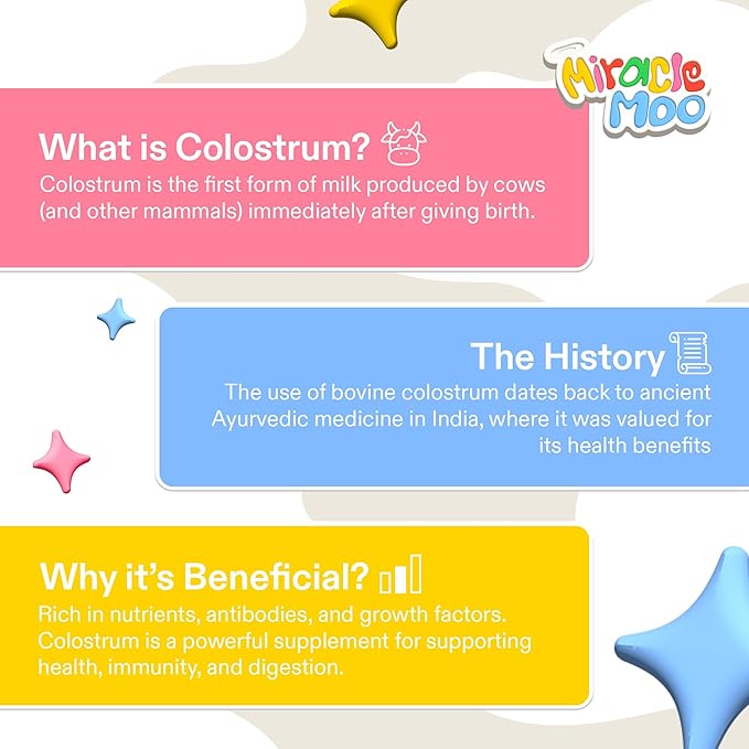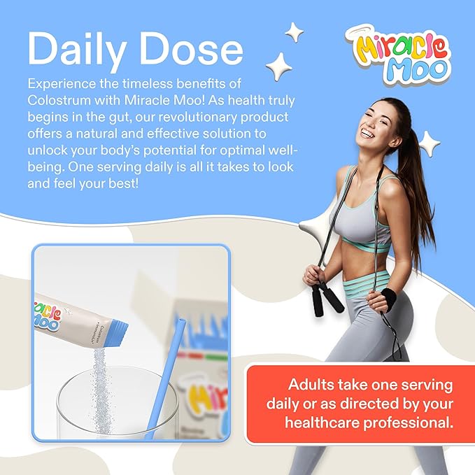 • 💧EASY MIXING: Simply mix 1 packet of Miracle Moo into water, smoothies, or your favorite recipes. Seamlessly incorporate the power of nature's superfood: colostrum into your daily routine and elevate your wellness journey.