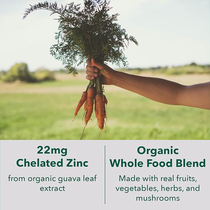 - Whole Food Zinc Supplements for Men and Women - Packed with 55mg Organic Whole Food Blend, and enriched with a variety of organic extracts our zinc formula is a comprehensive source of essential nutrients for skin health, eye health, antioxidant protection and healthy tissue development