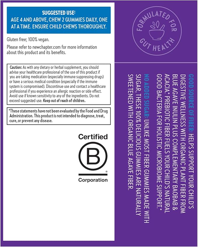 - 4 G FIBER DAILY: Good source of prebiotic fiber in 100% delicious gummies that kids love!