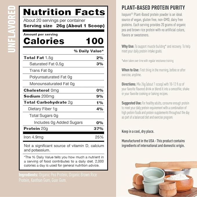 - NATURALLY DELICIOUS: Isopure Unflavored Plant Protein combines a pure blend of organic pea & rice protein to support your healthiest lifestyle. Crafted with four simple ingredients, our protein is the easy add to your daily routine.