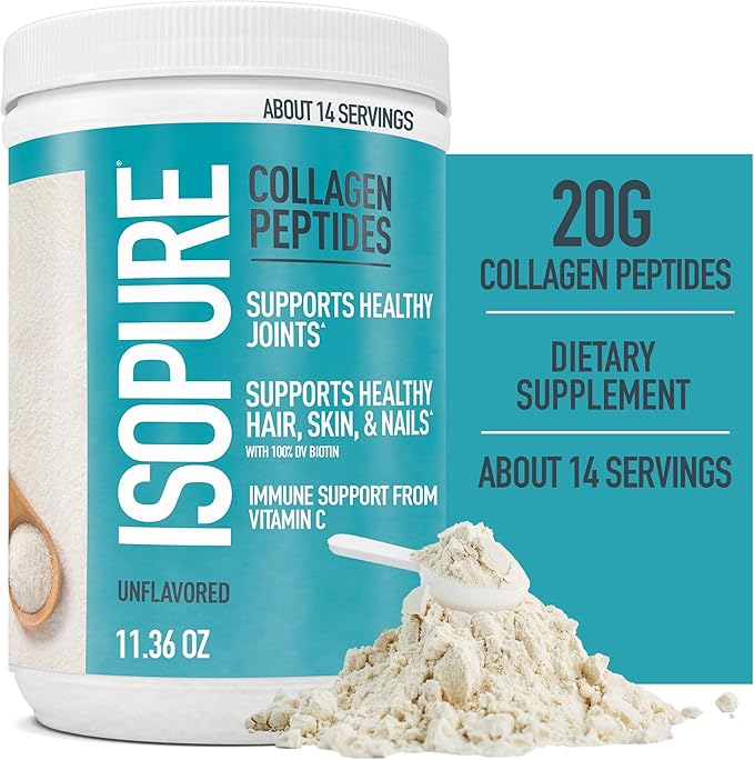 Bundle of Isopure Unflavored Whey Protein Isolate, 25g Protein, Zero Carb, 16 Servings, 1 Pound (Packaging May Vary) + Collagen Peptides Powder, 14 Servings, Unflavored, with Vitamin C, with Biotin