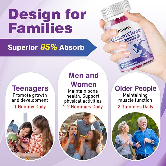 - Multiple Health Benefits: Whether you're looking for calcium supplements to bone heath, teeth & muscle health, or simply ensure optimal calcium intake, these gummies offer a tasty and effective solution to support overall body health