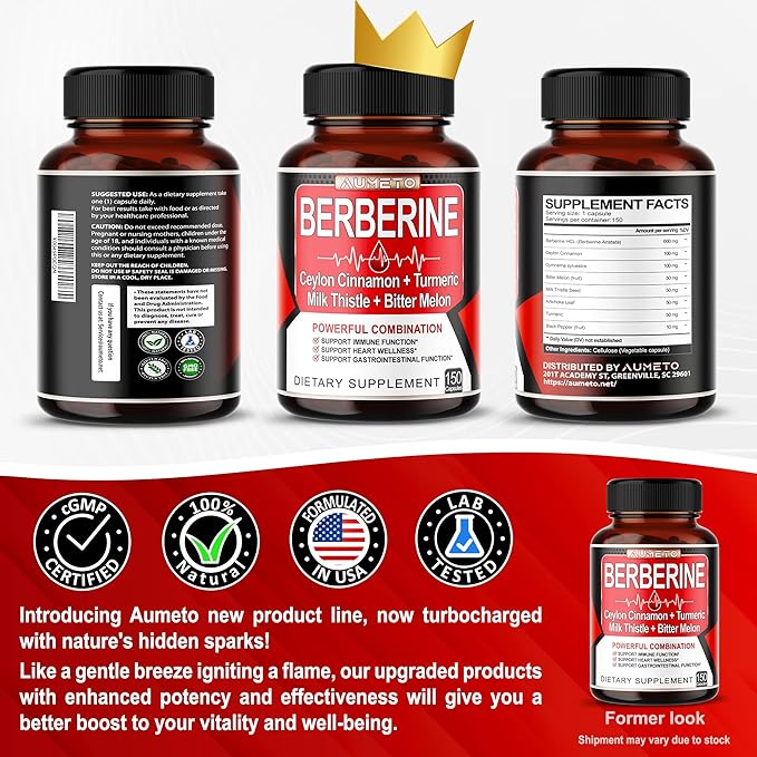 Berberine Supplement - Enhanced with Ceylon Cinnamon, Turmeric, Milk Thistle, Bitter Melon for Digestion, Immunity & Weight Managament (150 Count (Pack of 1))