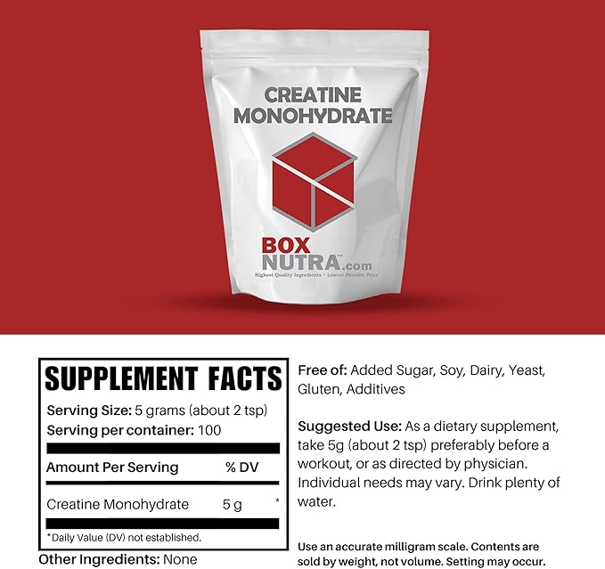 - Muscle-Building Creatine Monohydrate Powder: BoxNutra's creatine powder can increase your muscle performance during short-duration, high-intensity resistance exercises. And if you're an athlete, it can be beneficial while you're strength training, most notably for those who lift weights and cycle.