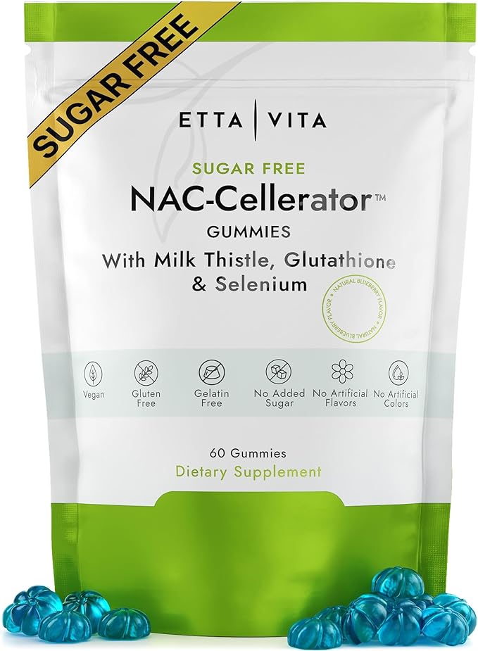 - [NAC Cellerator] - Etta Vita presents NAC Cellerator (cell accelerator) gummies as n-acetylcysteine helps cells function and repair faster. It does this by supporting the production of glutathione, which helps protect cells and keep them healthy.