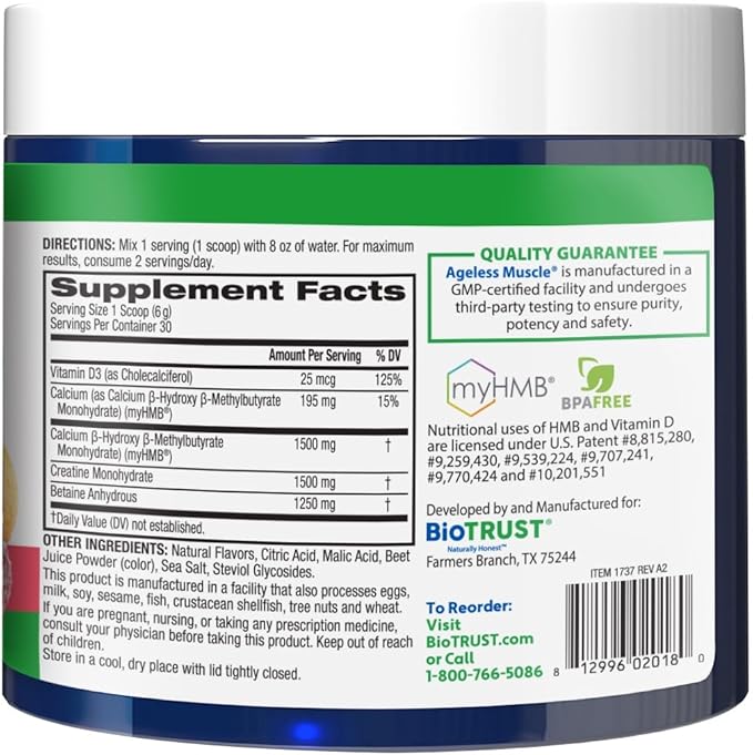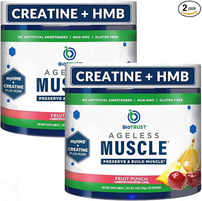 BioTrust Ageless Muscle Builder - Creatine HMB Powder with Vitamin D3 & Betaine - Build & Preserve Naturally Declining Muscle Mass & Strength - Fruit Punch, 60 Servings