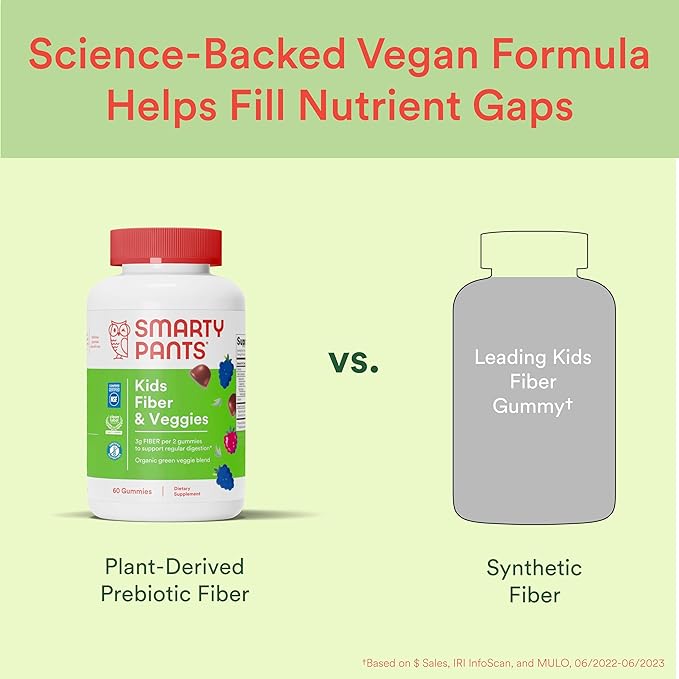 - SCIENCE-BACKED FIBER GUMMIES FOR KIDS: SmartyPants Kids Fiber & Veggies is specifically formulated to support regular digestion* in kids 4+ with prebiotic dietary fiber, inulin, and an organic green veggie blend of organic kale, spinach, and broccoli