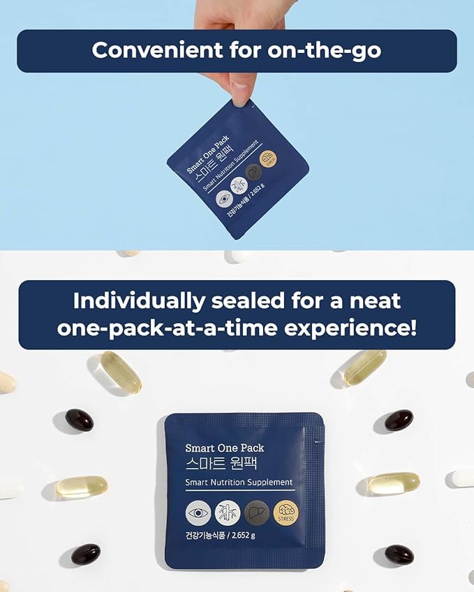 - 스마트원팩[Smart One Pack] ● Capsule containing EPA and DHA (600mg) - Can help improve blood circulation - It can help improve eye health by improving dry eyes.