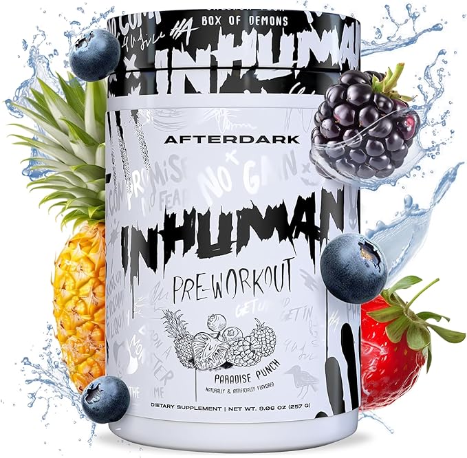 AFTERDARK INHUMAN Pre-Workout Powder, Enhanced Mind-Muscle Connection, Sustained Energy, Potent Nootropic Blend, Vegan, Gluten-Free, Soy-Free, 400mg Caffeine, No Crash, Paradise Punch