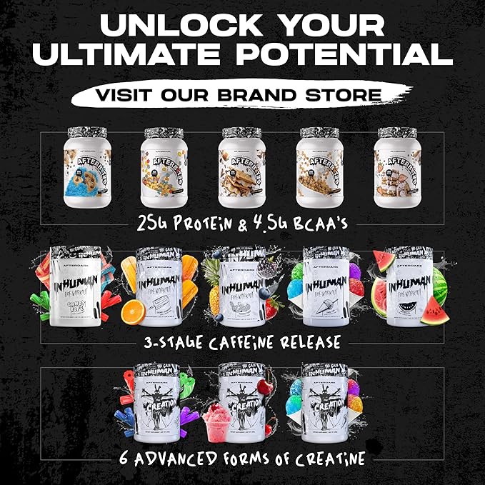 - SUPERNATURAL STRENGTH & PERFORMANCE. INHUMAN delivers a consistent energy surge through a delayed-release caffeine mix. Infused with Beta-alanine, L-Taurine, and Glycogen Polymers, it fights muscle fatigue, minimizes soreness, and elevates your overall physical performance.