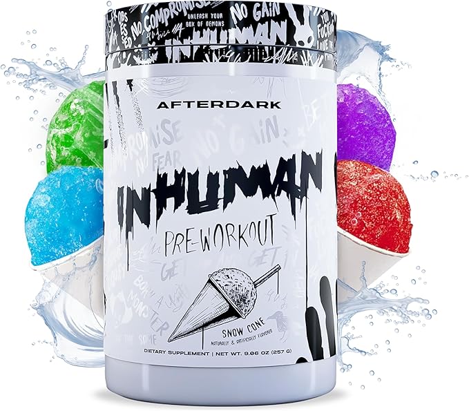 AFTERDARK INHUMAN Pre-Workout Powder, Enhanced Mind-Muscle Connection, Sustained Energy, Potent Nootropic Blend, Vegan, Gluten-Free, Soy-Free, 400mg Caffeine, No Crash, SnowCone