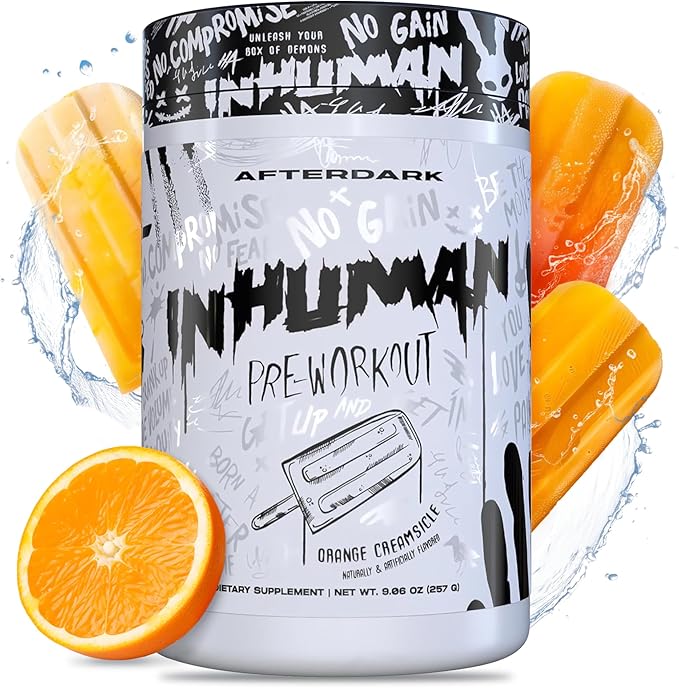 AFTERDARK INHUMAN Pre-Workout Powder, Enhanced Mind-Muscle Connection, Sustained Energy, Potent Nootropic Blend, Vegan, Gluten-Free, Soy-Free, 400mg Caffeine, No Crash, Orange Creamsicle